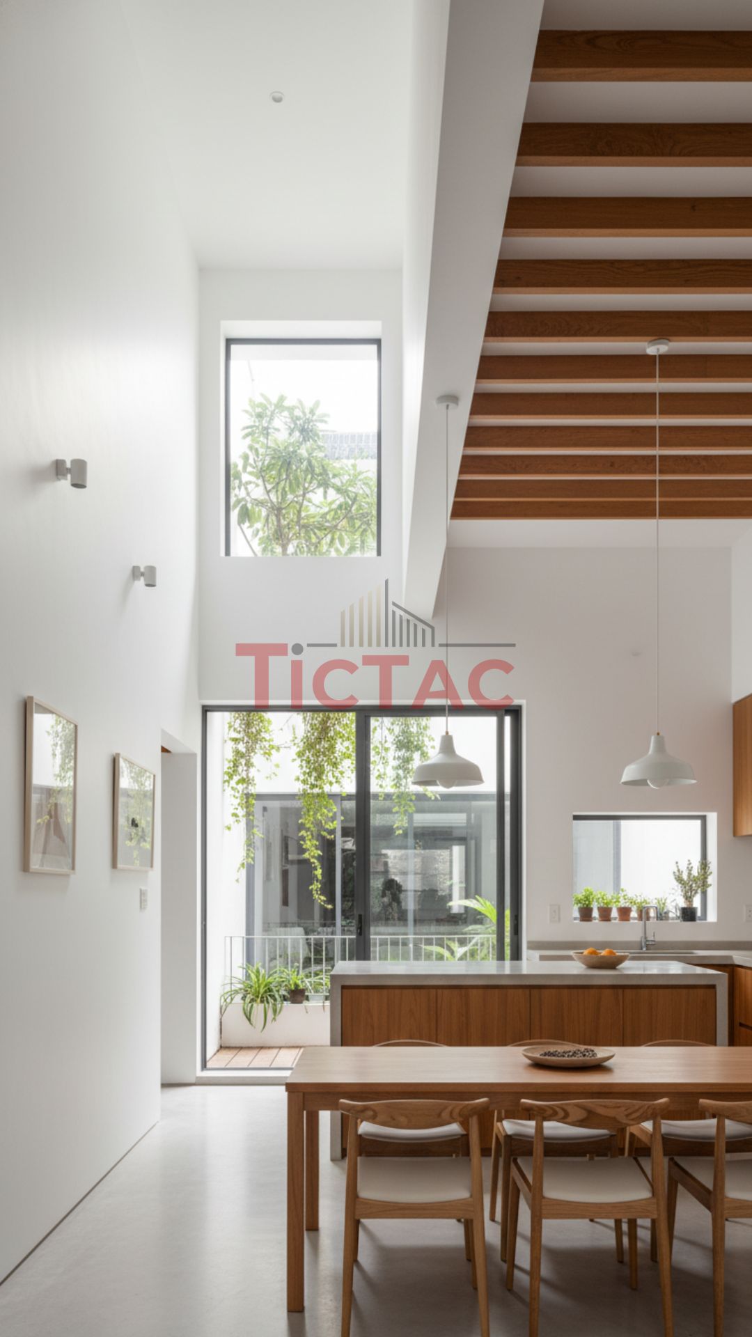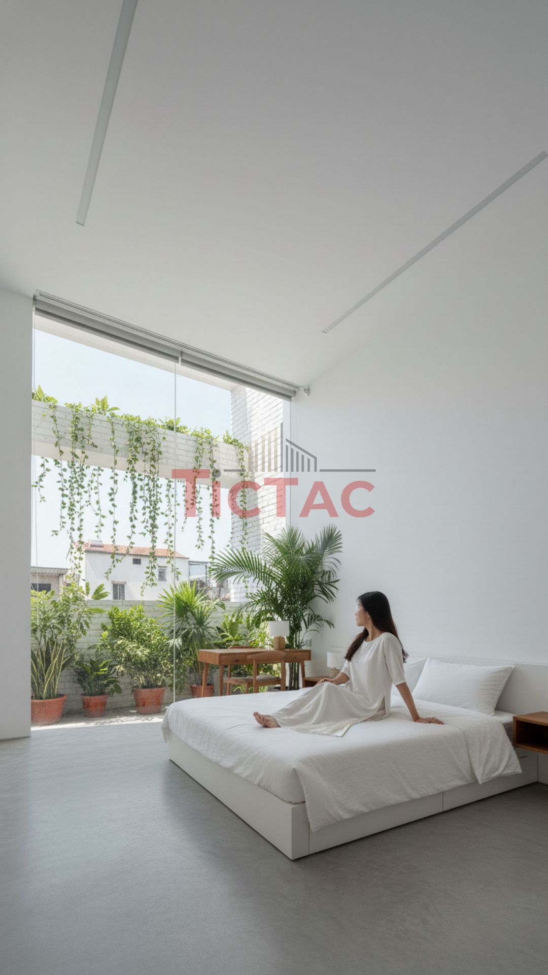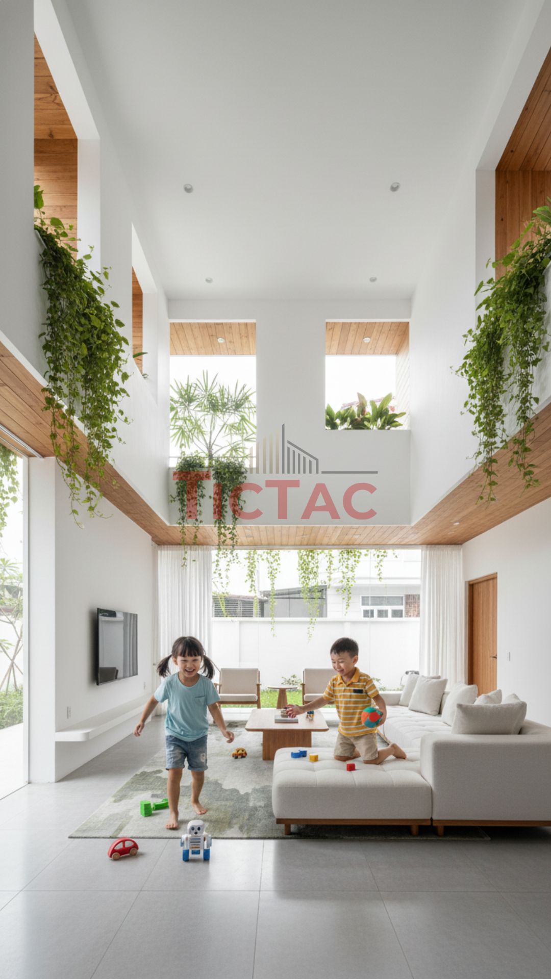 Ngay từ ý tưởng ban đầu, Tíc Tắc đã chọn ánh sáng làm linh hồn của toàn bộ thiết kế. Ánh sáng không chỉ đến từ những khung cửa lớn, mà còn từ giếng trời, lam bê tông, mảng xanh và sự phản chiếu của vật liệu tự nhiên.