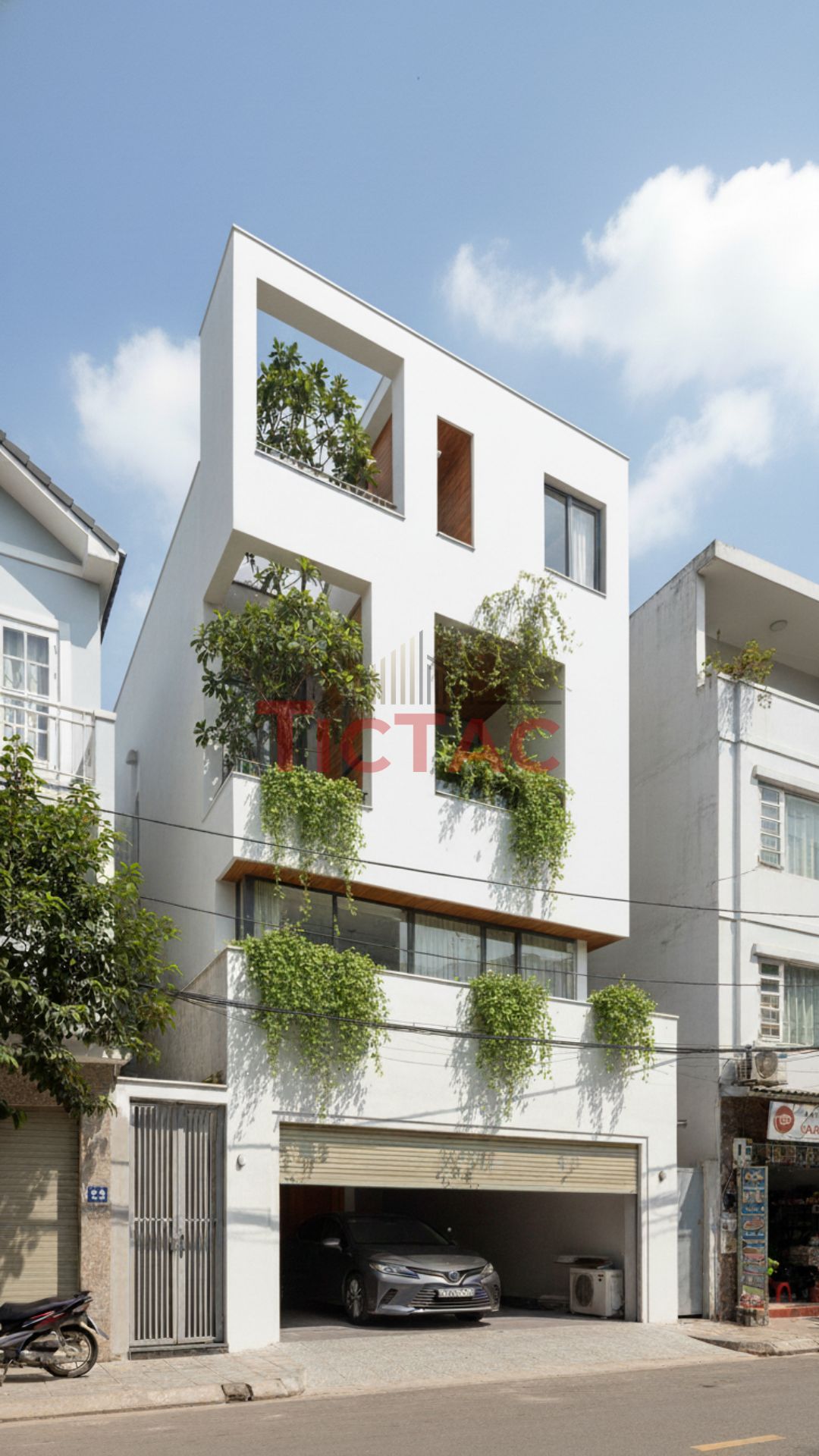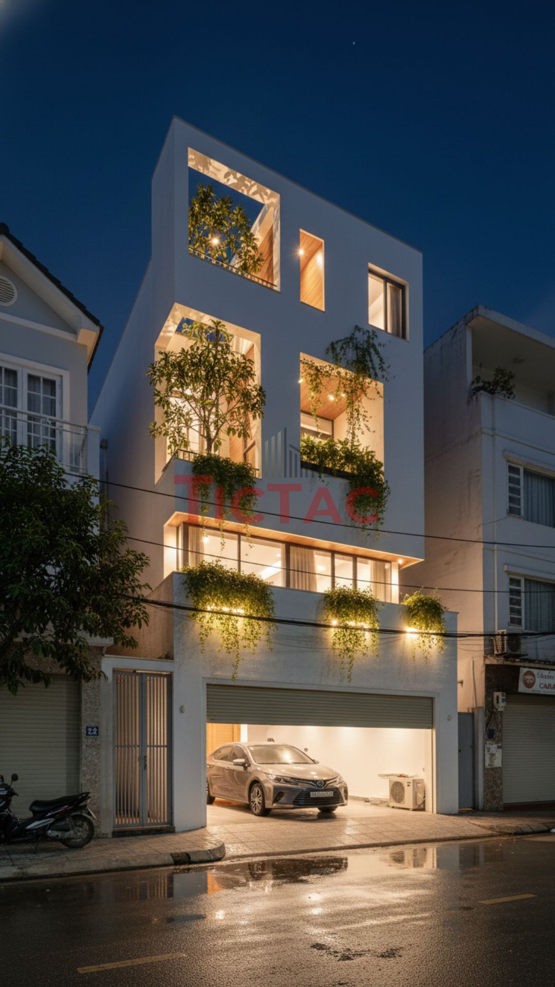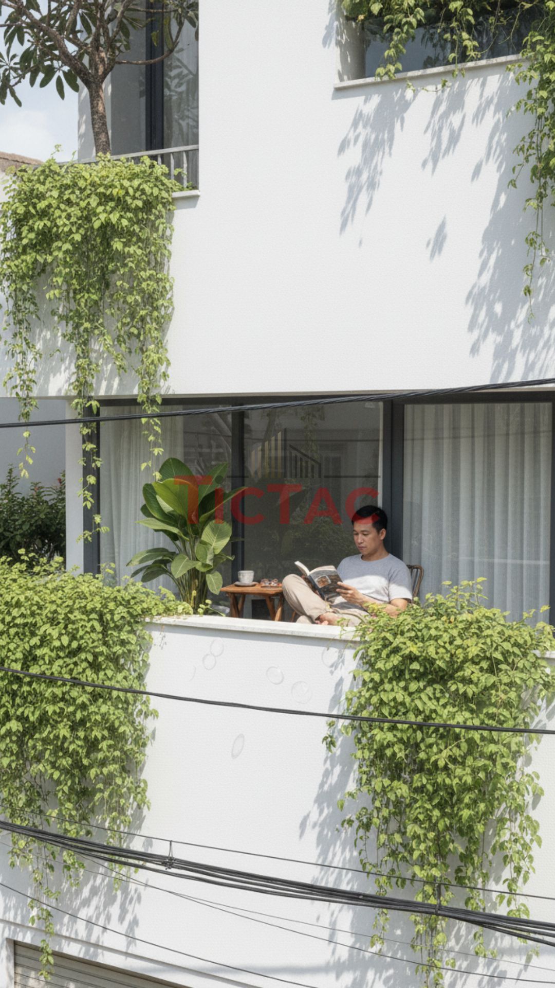 Ngay từ ý tưởng ban đầu, Tíc Tắc đã chọn ánh sáng làm linh hồn của toàn bộ thiết kế. Ánh sáng không chỉ đến từ những khung cửa lớn, mà còn từ giếng trời, lam bê tông, mảng xanh và sự phản chiếu của vật liệu tự nhiên.