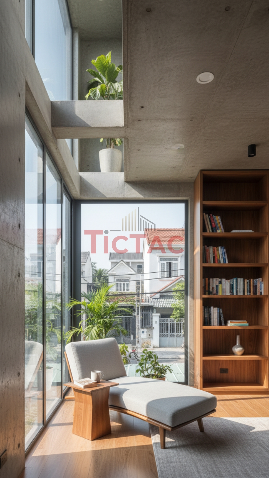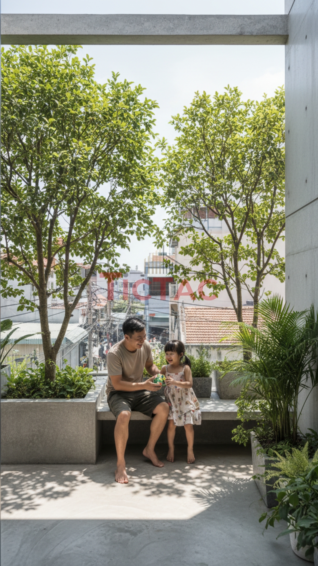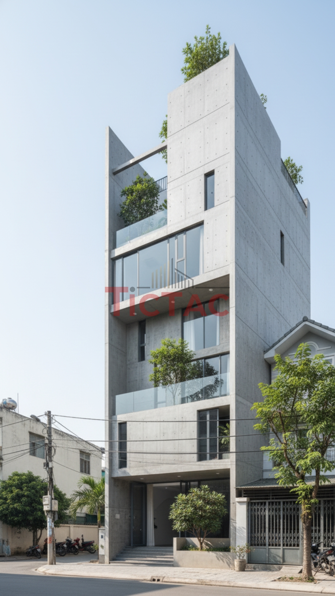 Từ căn nhà cũ xuống cấp, Tíc Tắc cải tạo thành “Ngôi Nhà Bê Tông Và Ánh Sáng” – không gian sống 8x20m hiện đại, xanh mát và đầy cảm xúc.
